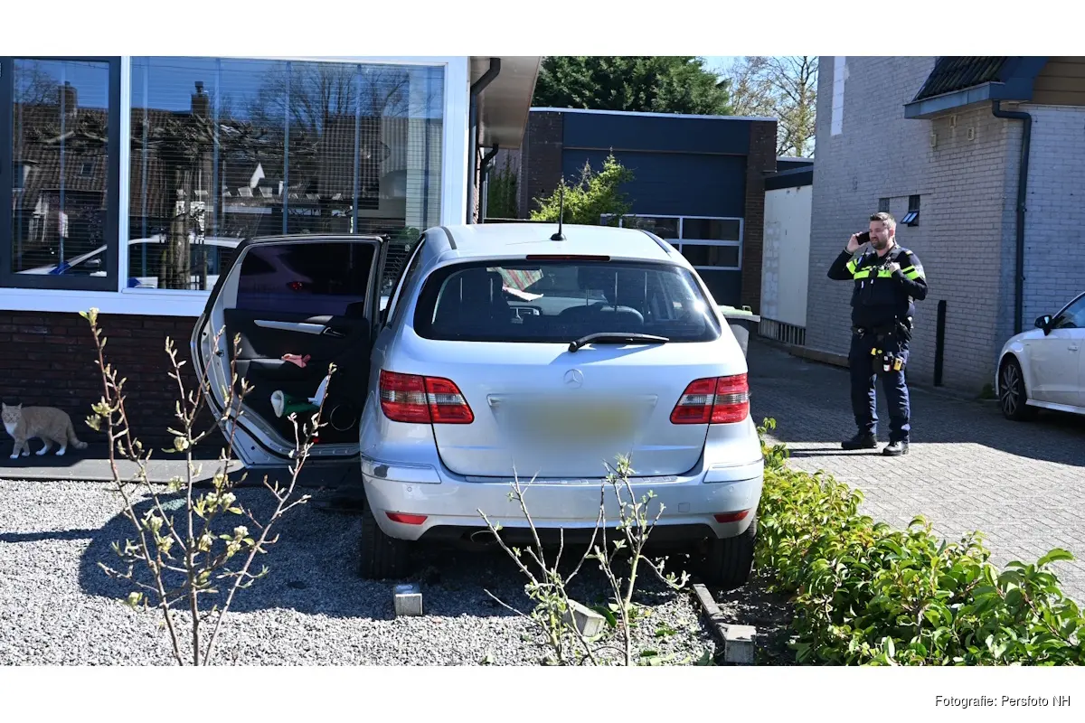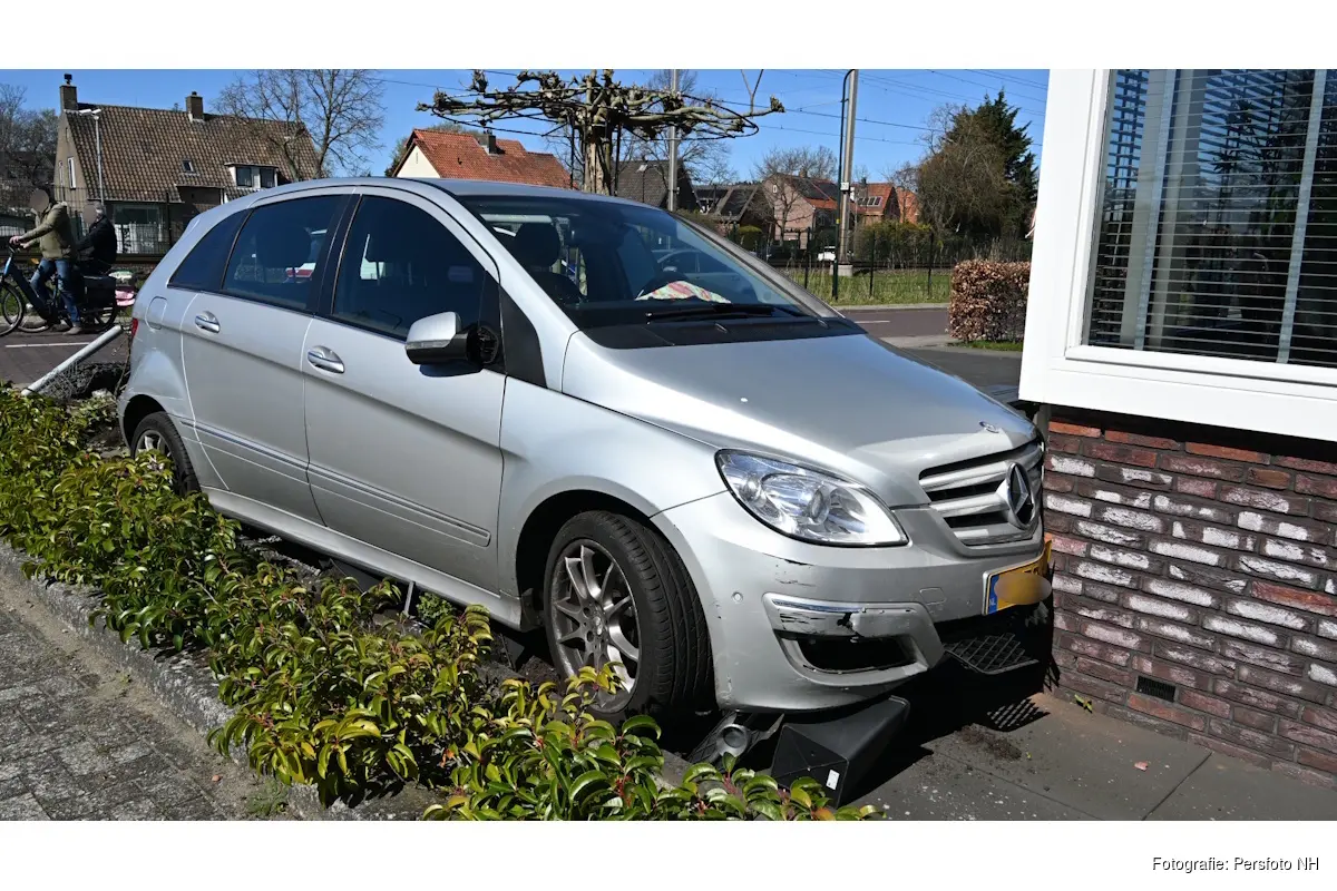 Een automobiliste raakte door een nog onbekende oorzaak van de weg en kwam met haar voertuig in de voortuin van een woning terecht. Daarbij werden meerdere verkeerspalen geraakt en omvergereden, die vervolgens verspreid over de weg en stoep belandden.