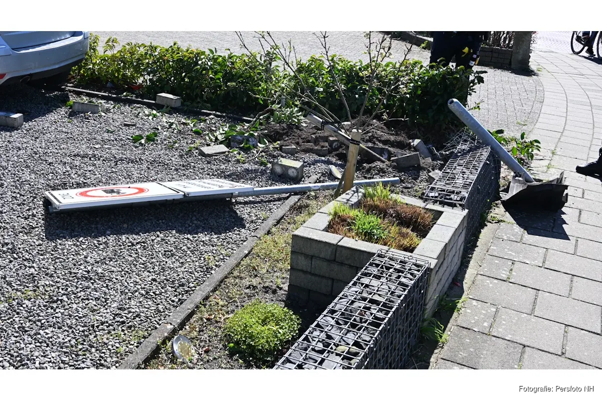 Door de klap ontstond flinke materiële schade. Naast schade aan de auto werden ook de verkeerspalen en de voortuin van de woning geraakt.