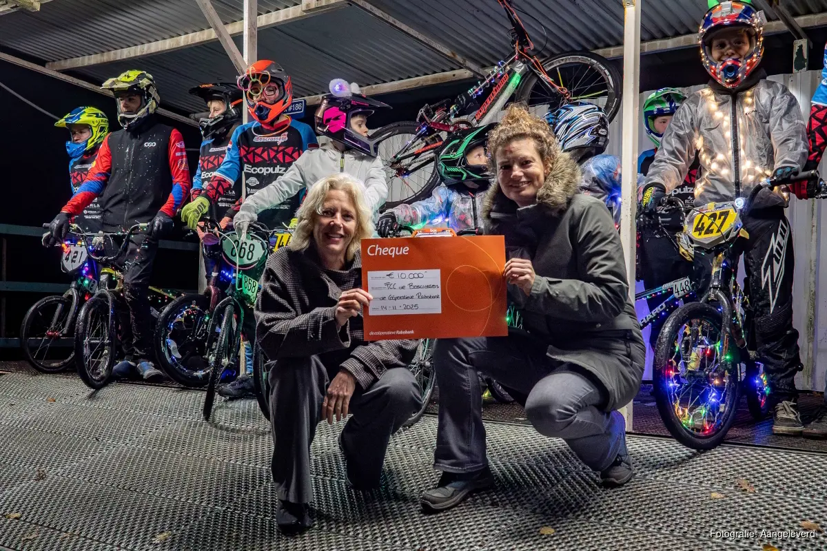 Dit jaar kreeg de lichtjesavond echter een bijzonder lichtpunt. Namens het Rabobank Coöperatiefonds overhandigde ledenraadslid Lisette Henstra een cheque van 10.000 euro aan de Boscrossers. “Met het Coöperatiefonds ondersteunen we lokale initiatieven die de regio sterker, duurzamer en leefbaarder maken. De Boscrossers laten zien hoe belangrijk een veilige en goed verlichte sportomgeving is voor jonge sporters. We zijn daarom blij dat we met deze bijdrage kunnen helpen om de verlichting te vernieuwen en zo de vereniging klaar te maken voor de toekomst.” aldus Henstra.
